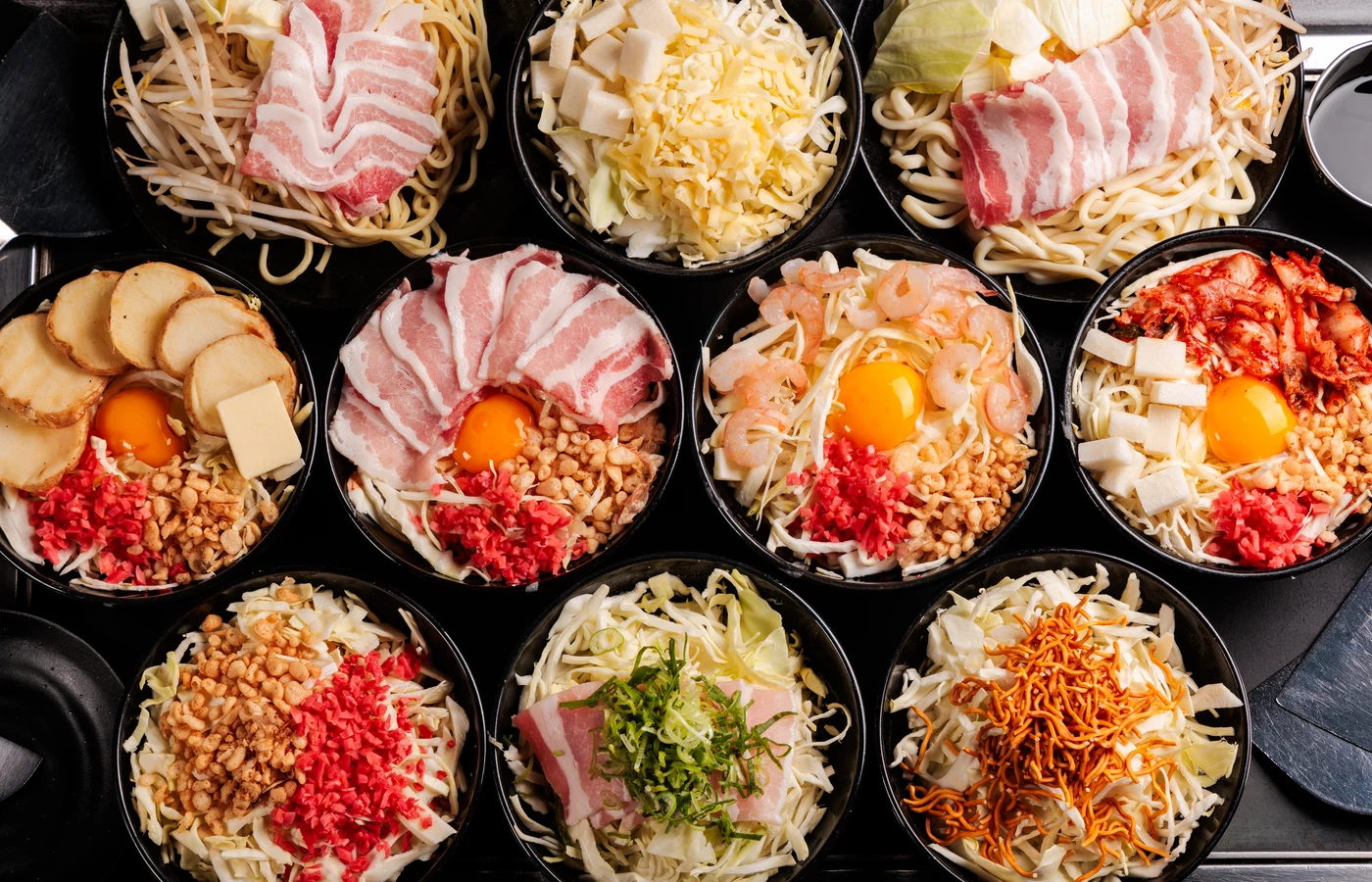 豚玉や海鮮など定番の具材はもちろん、チーズやキムチなどトッピングの組み合わせも自由自在です!