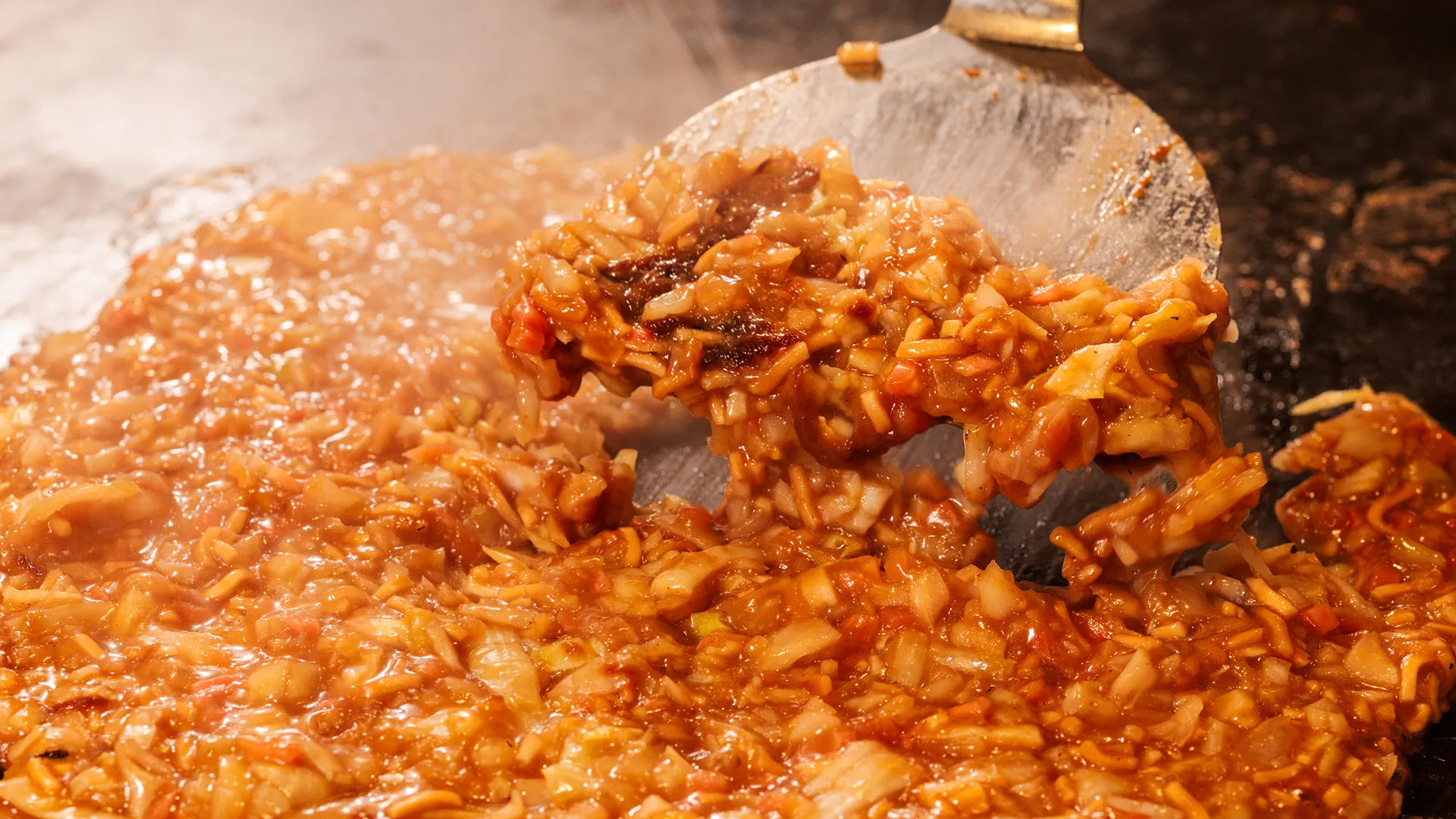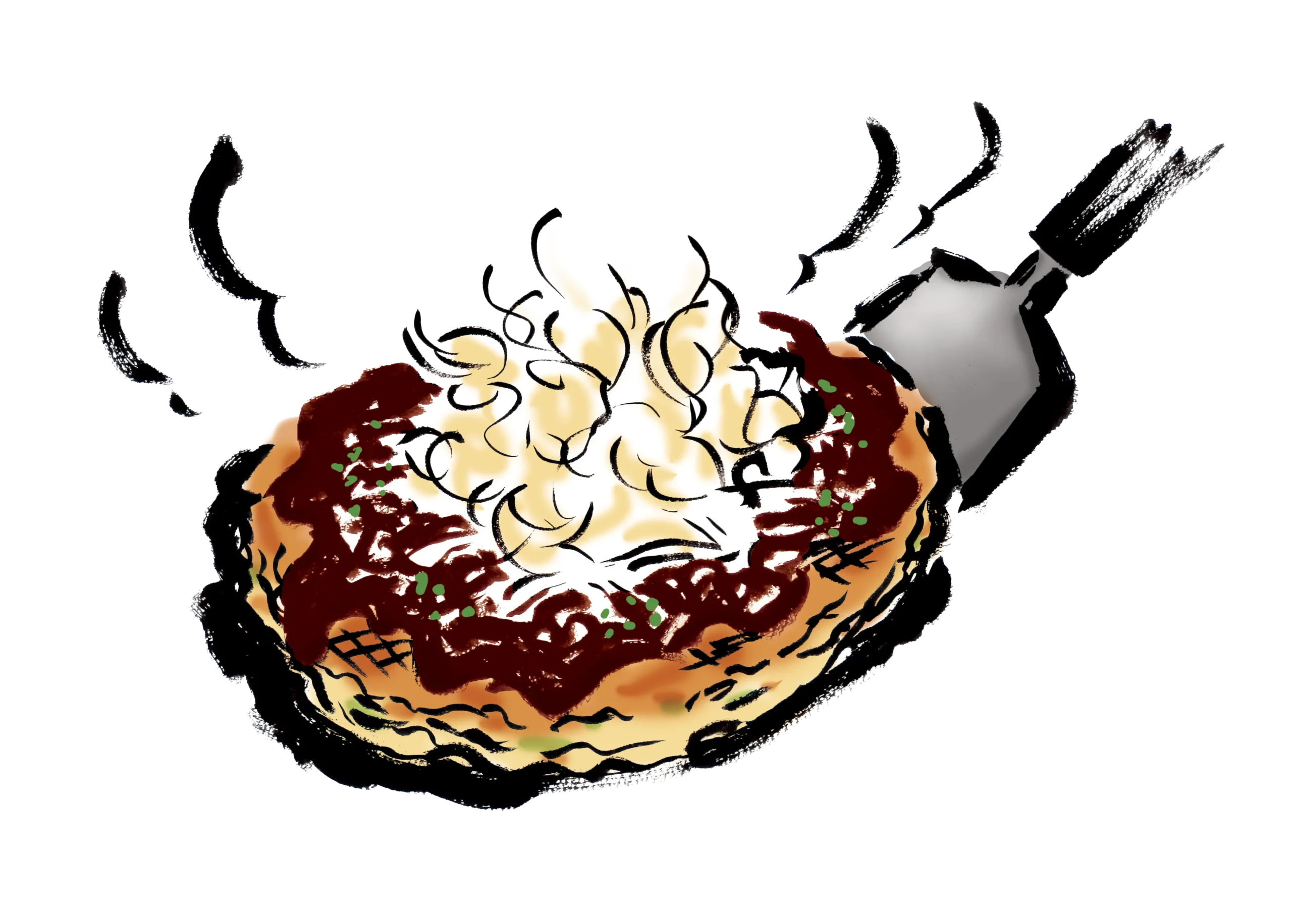 ヘラで少しずつお焦げを作りながら味わうもんじゃ焼きは、お酒のお供にもぴったりです。
